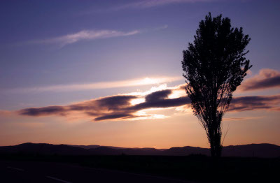 雪原に夕暮れが近づいています。