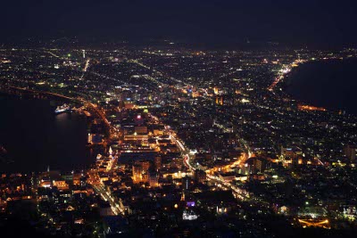 標高334メートルの休火山、函館山から見た函館市街の夜景。香港ナポリと並び世界三大夜景と称される有名な夜景。